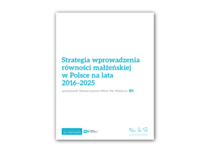 Strategia wprowadzenia równości małżeńskiej w Polsce do 2025 r. to dokument skierowany do wszystkich osób,organizacji i instytucji, które wspierają ideę zrównania osób LGBT+ w prawie do zawierania małżeństwa i pragną prowadzić skuteczne działania na rzecz wprowadzenia równości małżeńskiej w Polsce. Dokument jest wynikiem prac Stowarzyszenia Miłość Nie Wyklucza prowadzonych w ścisłej współpracy z organizacjami pozarządowymi … Czytaj dalej Strategia wprowadzenia równości małżeńskiej do 2025 roku